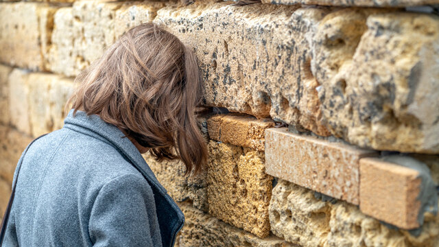 Jewish tourist prays in the wailing wall of Jerusalem, Israel