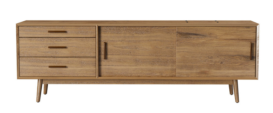Modern wood tv stand isolated on transparent white background, Clipping Path