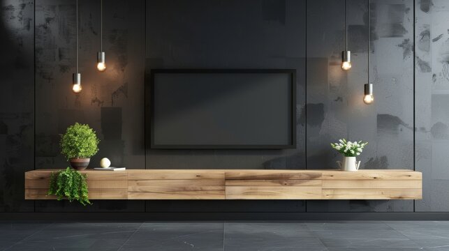 Mock up white wall background,Modern living room decor with a tv cabinet, Generative AI