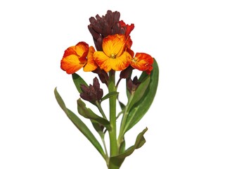 Yellow red flower of Wallflower isolated on white, Erysimum cheiri