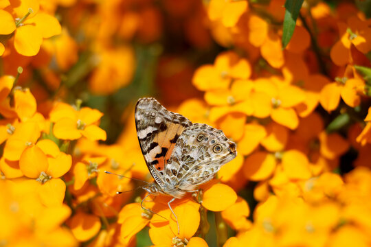 Close up of a wallflower (erysimum cheiri) plant in bloom