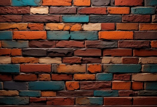 Close-up of vintage brick wall with diverse colors and patterns