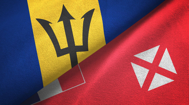 Barbados and Wallis and Futuna two flags textile cloth, fabric texture