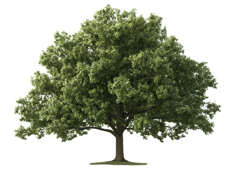 A large tree with green leaves is standing alone in a field. The tree is the main focus of the image, and it is a symbol of strength and resilience. The field surrounding the tree is empty