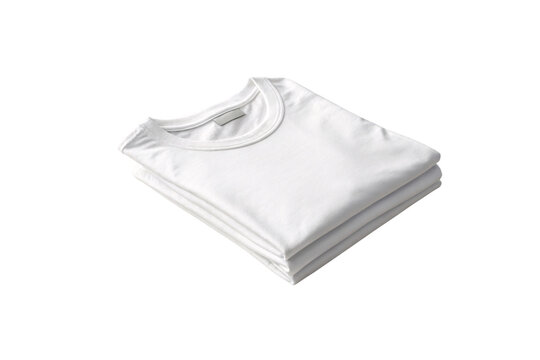 A neatly stacked set of three white T-shirts, crisp and smooth. Soft fabric and clean lines make them essential wardrobe basics, isolated on a transparent background