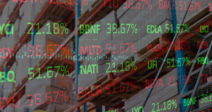 Image of financial data processing over warehouse