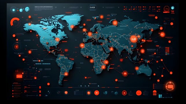 Innovative systems enhance global logistics capabilities showcasing a comprehensive world map with interconnected shipping lanes cargo containers and supply chain networks rendered in a sleek