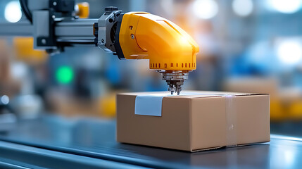 Automated packaging process warehouse industrial technology indoor environment close-up view efficiency in logistics