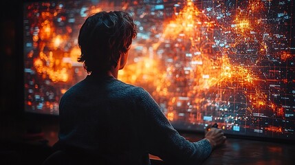 Logistics Manager Tracking Global Supply Chains on Holographic Dashboard with 3D Data Visualization