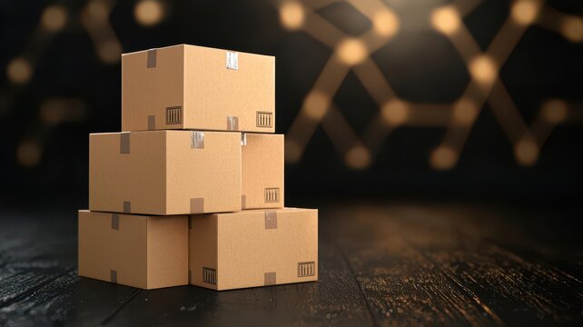 Blockchain Logistics Revolution Futuristic Warehouse Visualization Revealing Smart Inventory Tracking with Immersive Digital Network Connectivity and Supply Chain Optimization