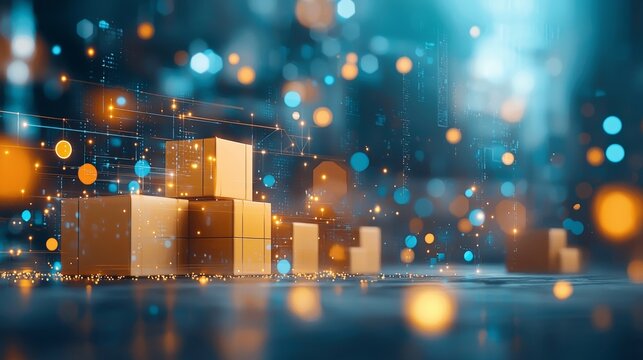 Optimizing warehouse logistics streamlined package management industrial setting digital visualizations futuristic environment aerial view efficiency concept