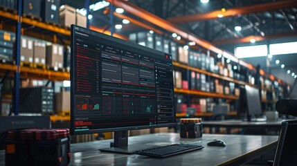 Computer Monitor with Data Analytics Displayed in a Warehouse Setting