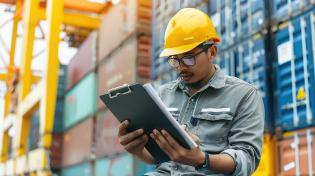 Efficient Logistics Manager Conducting Inventory Check Using Clipboard, Generative Ai