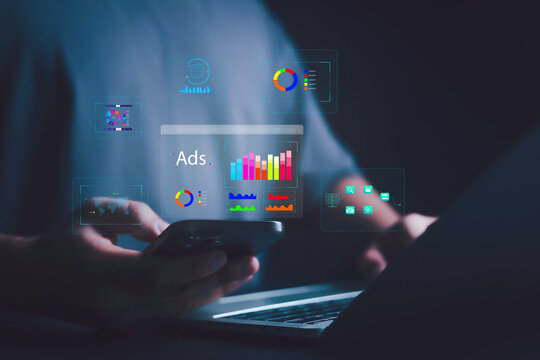 Warehouse manager analyzing logistics data with holographic analytics icons for planning