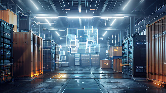 Futuristic Technology Retail Warehouse Container, Digitalization and Visualization of Industry Process that Analyzes Warframe texture background