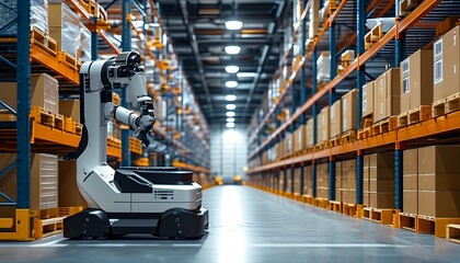 Automated sorting action in warehouse logistics facility industrial content modern environment ground view robotics efficiency