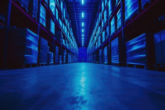 Futuristic Warehouse Software Interface in Neon Blue