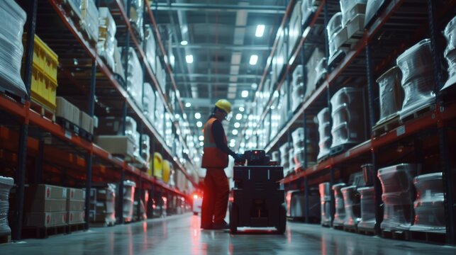 Warehouse personnel operating machinery in industrial environment
