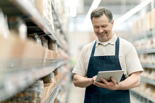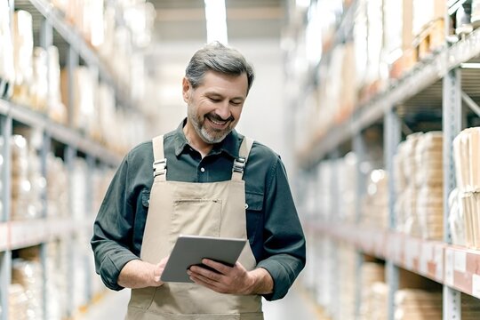 Warehouse Manager Using Tablet for Inventory Management in Storage Facility