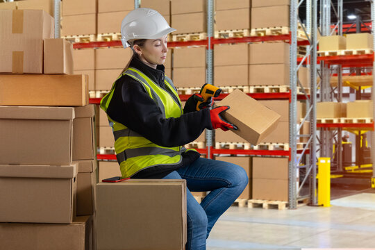Warehouse Worker Scanning Box With Barcode Reader Images