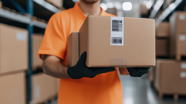 Warehouse Worker Scanning Packages with Barcode Reader for Efficient Inventory Management and Order Fulfillment
