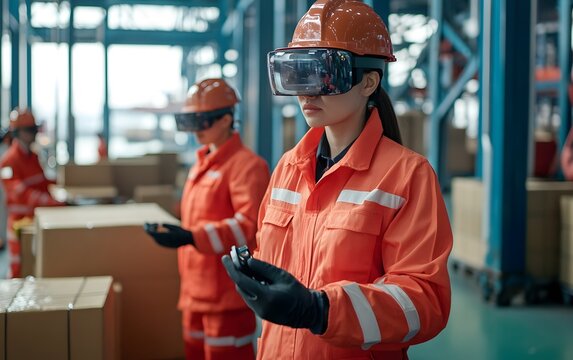 Warehouse Worker Using Virtual Reality Technology for Efficient Inventory Management in a Modern Industrial Setting
