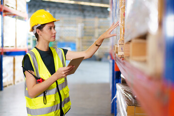 Female warehouse worker using tablet for inventory management