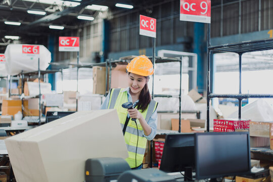 Warehouse Worker Using Barcode Scanner For Order Management Images