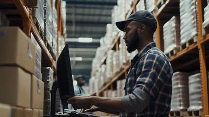 Optimize your warehouse operations with a warehouse worker using tablet for smart inventory management, showcasing efficiency and accuracy This image highlights modern logistics, utilizing technology