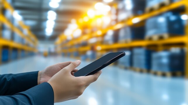 Modern warehouse operations, utilizing mobile technology for efficient inventory management and logistics