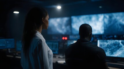 Workers monitor large displays in a logistics control center, analyzing delivery routes and real-time data for efficient operations. Generative AI