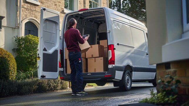 Delivery Van Parking Near Warehouse for Loading and Unloading Packages During Daylight Hours