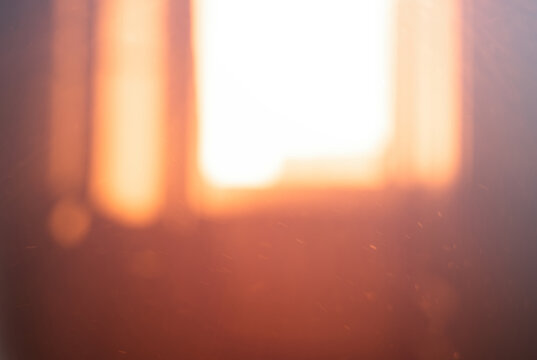A modern and warm bedroom interior bathed in the golden light of sunset