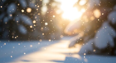 Soft focus autumn bokeh lights in warm sunlight and gentle falling snow