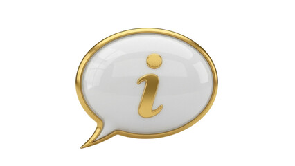 Golden information icon in speech bubble isolated PNG, glossy 3D help and support symbol on transparent background