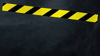 Yellow tape with black and yellow stripes on a dark background. Warning ribbon.