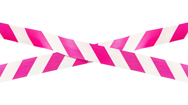 Pink horizontal plastic caution tape crossed Isolated on transparent background