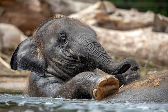 Hippo head surfacing in calm green water, eye and ear above surface, wildlife close-up