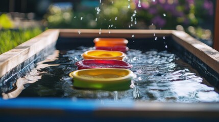 Splashes of clear water creating dynamic patterns in a bright setting