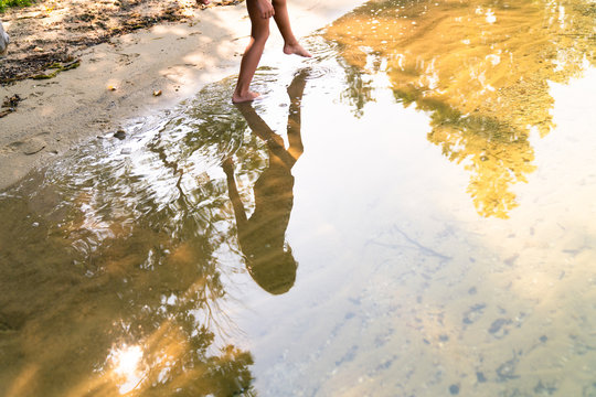 Low section of a girl wading in the water