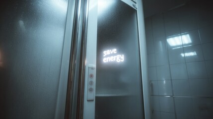 Energy conservation message on steamy shower glass for eco-friendly awareness,Energy Saving Week