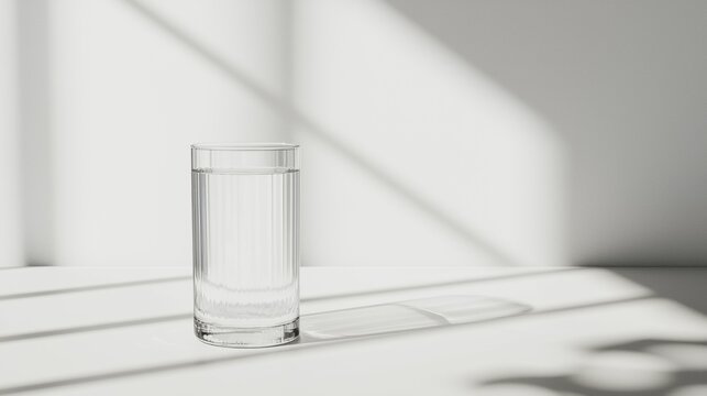 fresh clean water in transparent glass at sunny day outside on wooden table