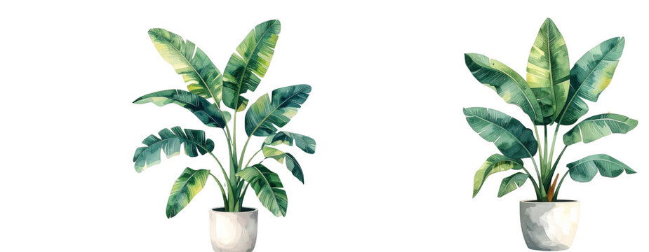 Sat of Minimalist Watercolor Illustration of Potted Banana Plant