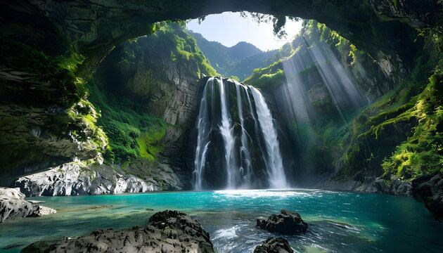 Mystical waterfall landscape image
