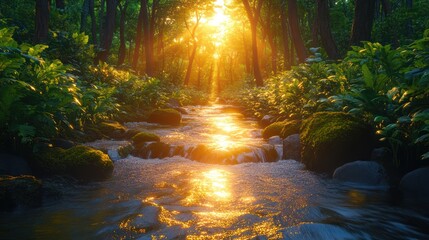 Golden waterfall in forest