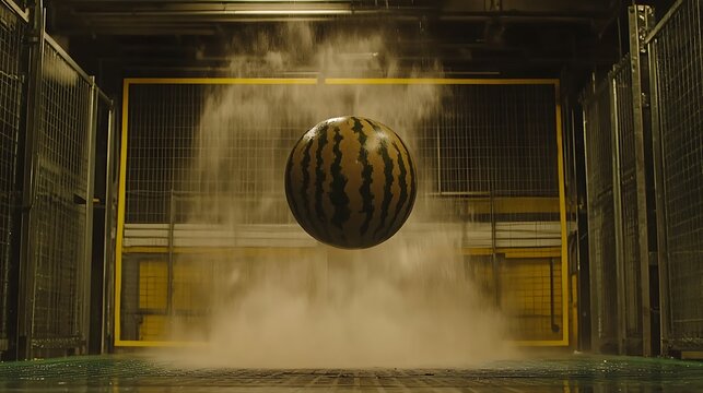 High-speed capture of watermelon exploding on impact, symbolizing freshness, intensity, and dynamic summer energy in cinematic food photography
