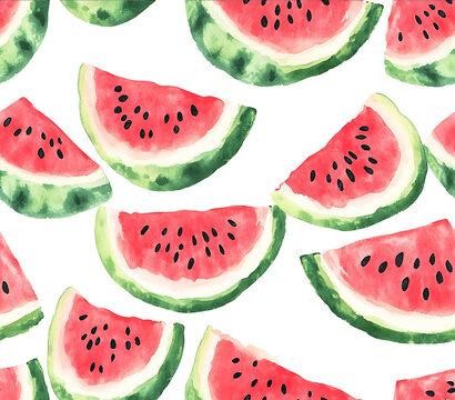 Watermelon pattern on a white background handdrawn in a watercolor style repeating design seamless pattern