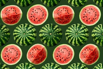 wall of different green shades of watermelon in a top view.Fresh produce display, Summertime food exhibit, Farm stand decoration grocery store  or eco market display