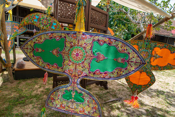 Colorful various types and size of traditional Malay kites.
