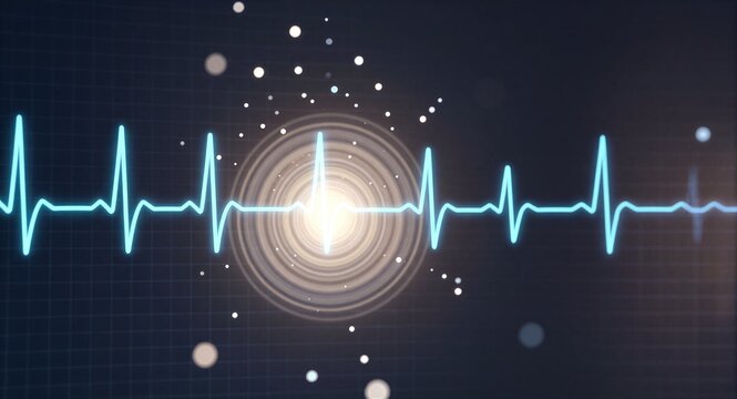 Advanced digital health interface featuring a glowing heartbeat waveform and futuristic data elements, symbolizing medical technology, innovation, and wellness monitoring